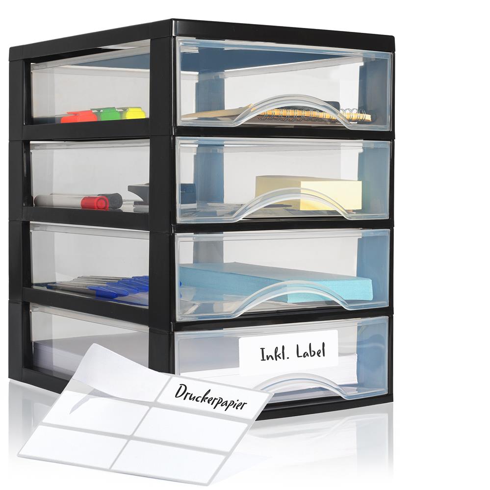 Lieferumfang: 1 x Schubladencontainer mit 4 Schubladen inkl Aufkleber, 36 x 26 x 36,5 cm (LxBxH)