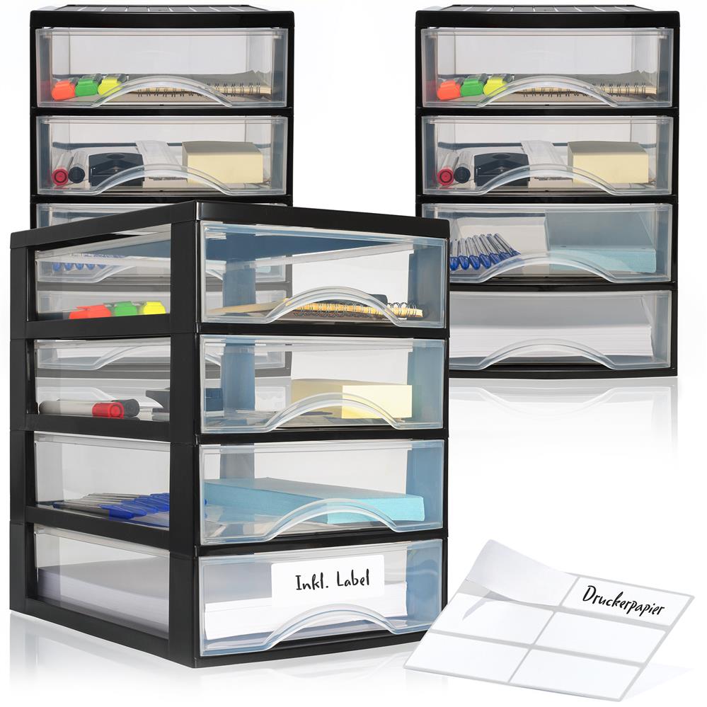 Lieferumfang: 1 x Schubladencontainer mit 4 Schubladen inkl. Aufkleber, 36 x 26 x 36,5 cm (LxBxH)