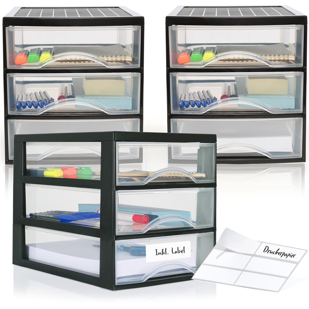 Lieferumfang: 3 x Schubladencontainer mit 3 Schubladen inkl. Aufkleber, 36 x 26 x 28 cm (LxBxH)